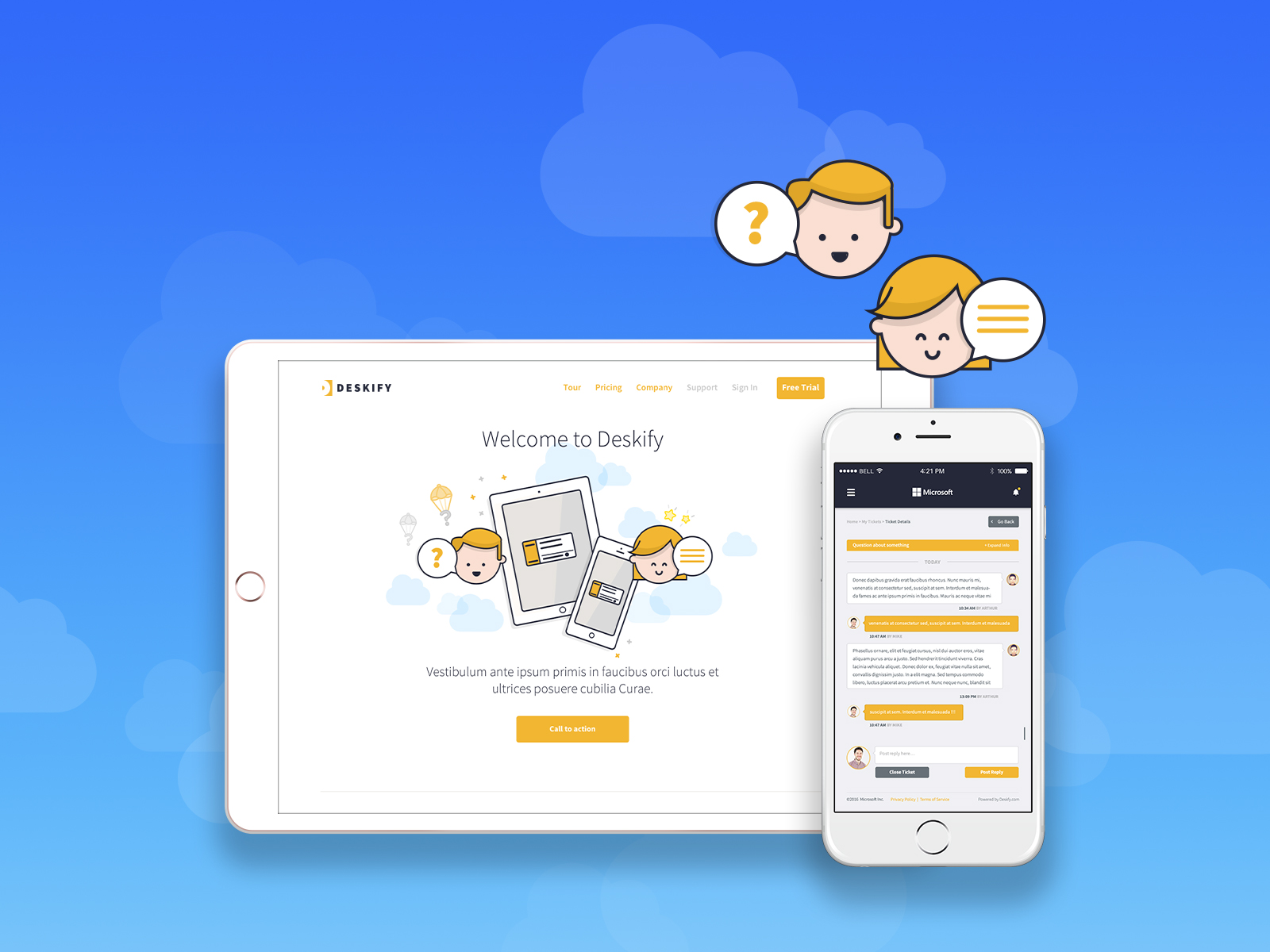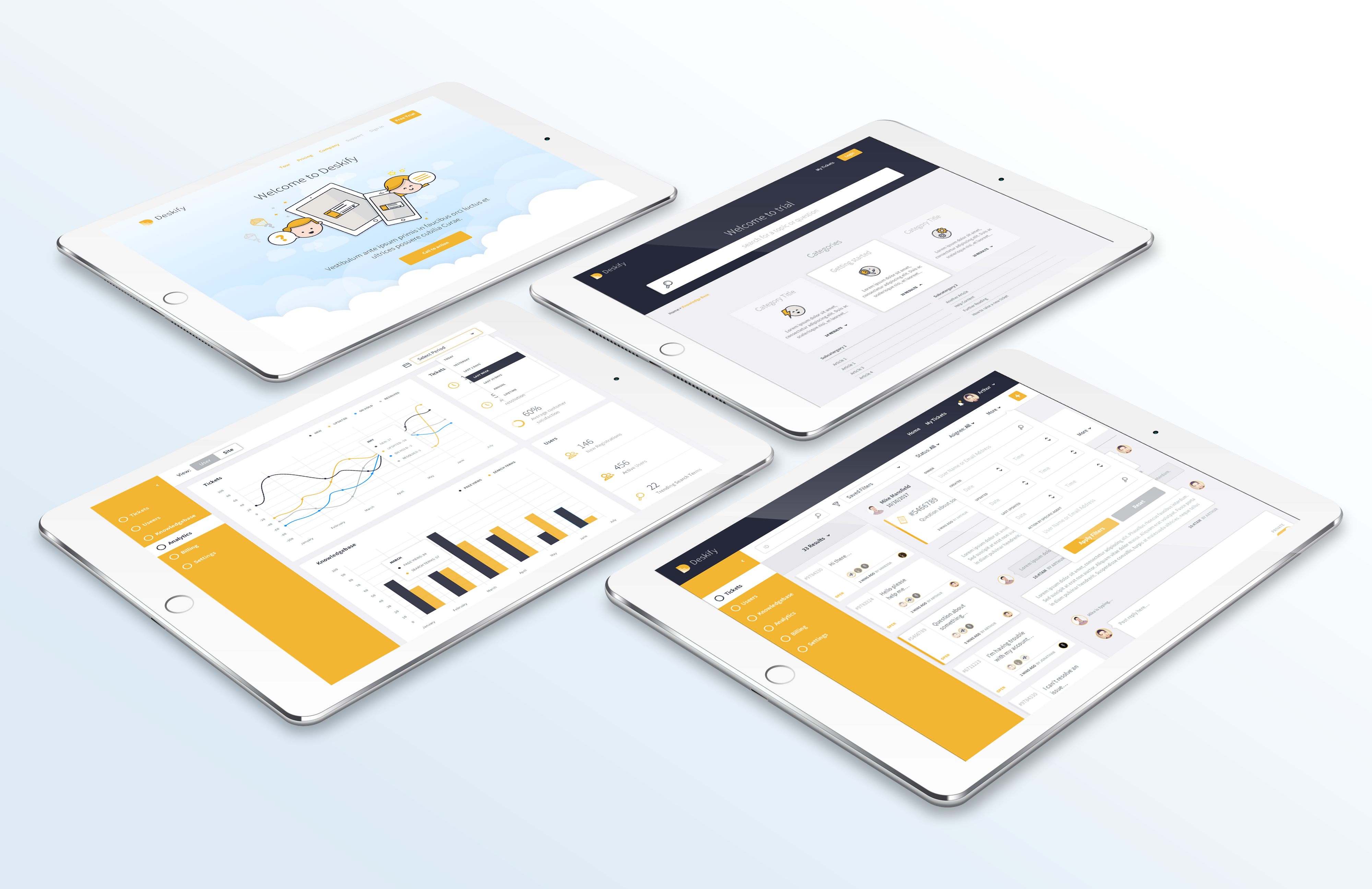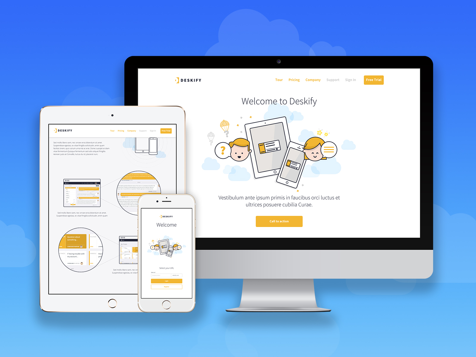 Deskify is a help desk solution that required a clean, flat responsive UI for their SaaS (web app) MVP. I produced a complete UI Design of the help desk for both users and administrators and developed wireframes, branding, illustrations, and UI styles to be used on both desktop and mobile devices.